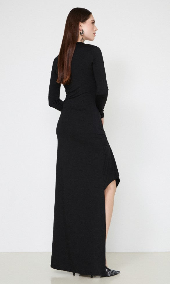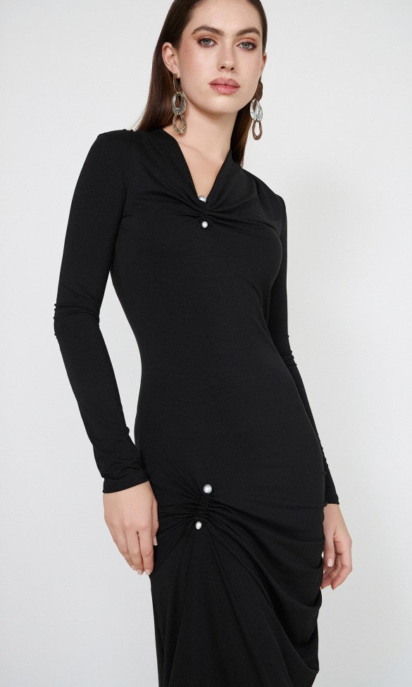 Φόρεμα από ζέρσεϊ με μεταλλική λεπτομέρεια σε μαύρο χρώμα, Margaret