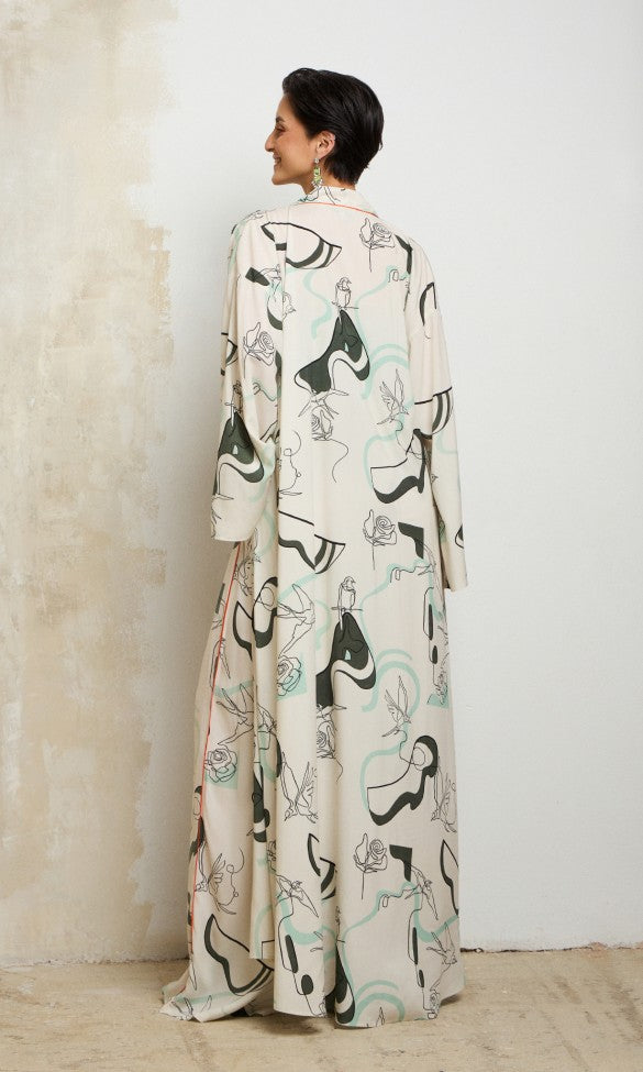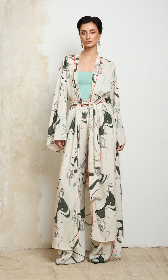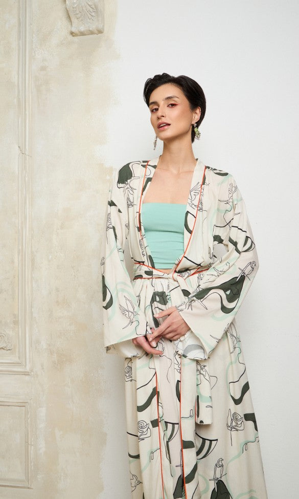 Το Daisy Kimono Maxi είναι ένας εξαιρετικός συνδυασμός ρευστότητας και εντυπωσιακού σχεδιασμού. Αυτό το κομμάτι επαναπροσδιορίζει την αβίαστη κομψότητα και συνοδεύεται από μια δωρεάν ζώνη διακοσμημένη με ένα πολύχρωμο αφηρημένο σχέδιο και τονισμένο με ένα εντυπωσιακό πορτοκαλί τελείωμα . Κατασκευασμένο από ένα ελαφρύ, αναπνεύσιμο ύφασμα, η ρέουσα σιλουέτα του δημιουργεί μια αίσθηση κίνησης και χάρης. Σχεδιασμένο για ευελιξία, μεταβαίνει άψογα από το cover-up για την παραλία μέχρι το εκλεπτυσμένο layering στην πόλη , καθιστώντας το απαραίτητο για κάθε μοντέρνα γκαρνταρόμπα. Είτε συνδυασμένο με μαγιό, ξεχωριστά tailored ρούχα είτε με casual basics, αυτό το κιμονό προσθέτει μια τολμηρή αλλά και εκλεπτυσμένη πινελιά στην εμφάνισή σας.