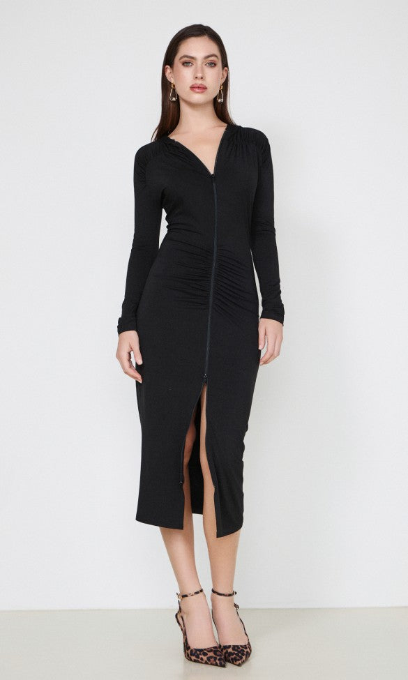 Φόρεμα από ζέρσεϊ με φερμουάρ και κουκούλα, μαύρο MARGARET