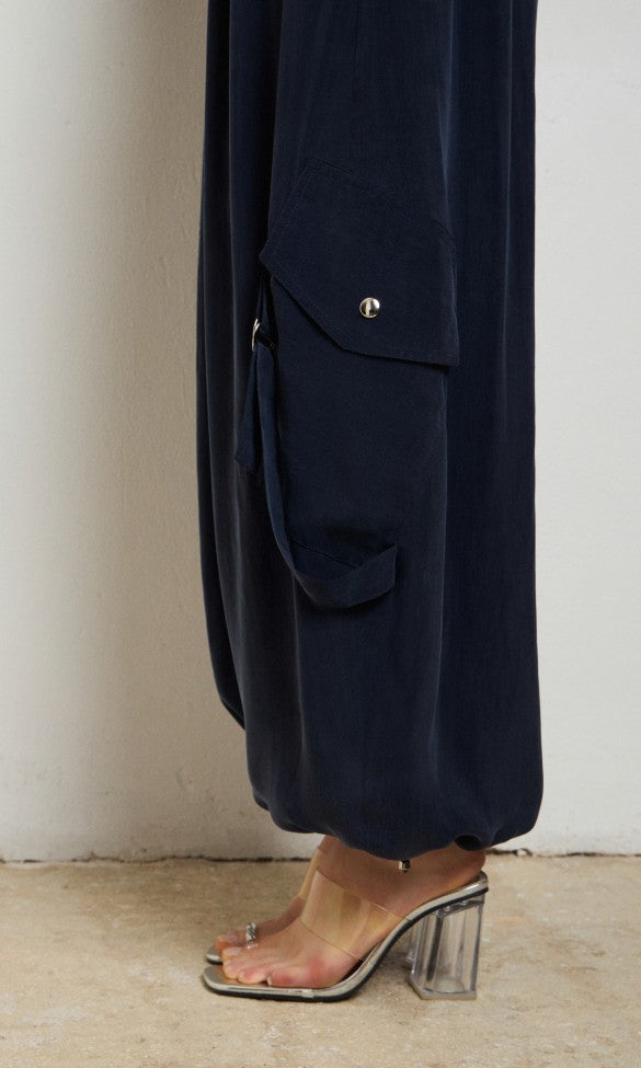 These 100% Cupro pants are an exemplar of sustainable fashion, crafted from eco-conscious cupro fabric known for its silky-smooth feel. They offer a comfortable, relaxed fit with a flexible elasticated waistband, complete with drawstring ties for an adjustable fit. The design is both functional and stylish, featuring spacious side pockets with flap closures, which add practicality without sacrificing the garment's sleek aesthetic. These pants are designed to be versatile, perfect for creating a variety of looks, from casual daywear to a more elevated ensemble.