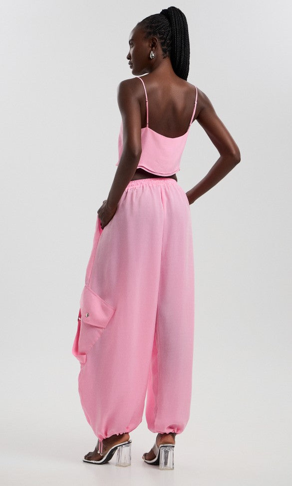 These 100% Cupro pants are an exemplar of sustainable fashion, crafted from eco-conscious cupro fabric known for its silky-smooth feel. They offer a comfortable, relaxed fit with a flexible elasticated waistband, complete with drawstring ties for an adjustable fit. The design is both functional and stylish, featuring spacious side pockets with flap closures, which add practicality without sacrificing the garment's sleek aesthetic. These pants are designed to be versatile, perfect for creating a variety of looks, from casual daywear to a more elevated ensemble.
