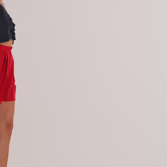 Crafted from eco-friendly cupro fabric, these red sustainable cupro shorts are a summer wardrobe essential for the environmentally conscious. The shorts feature a flattering, tailored waistband that secures with a hidden front fastening for a seamless look. Pleated detailing adds a touch of sophistication, while the relaxed fit ensures comfort. The unique design includes a subtly elongated back, providing additional coverage and a contemporary high-low hem effect. These versatile shorts can be dressed up with a blouse and sandals or kept casual with a simple tee and sneakers, perfect for those who value both style and sustainability
